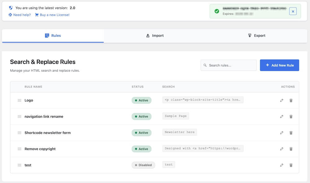 Globally, you will search and replace the final source code of the page, just before it displayed! So you can do a lots of modifications, and you can revert just by removing the rule you added… so no big mistake can be done ! And you can replace more than TEXT, you can replace by a shortcode, add specific restriction of use… it’s just awesome !